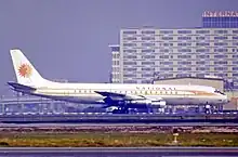 National Airlines was a major United States airline that operated from 1934 to 1980.[2] For most of its existence the company was headquartered at Miami International Airport, Florida.[3] At its height, National Airlines had a network of "Coast-to-Coast-to-Coast" flights, linking Florida and Gulf Coast destinations such as New Orleans and Houston with cities along the East Coast as far north as Boston as well as with large cities on the West Coast including Los Angeles, San Francisco and Seattle.[4] From 1970 to 1978, National, Braniff International Airways, Pan American World Airways (Pan Am) and Trans World Airlines (TWA) were the only U.S. airlines permitted to operate scheduled passenger flights to Europe.[5]