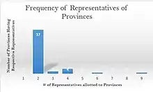 Burkina Faso is divided into 45 electoral provinces within their 13 regions. Each province elects between two and nine representatives, and these representatives are members of political parties. There are 111 members of the National Assembly elected to represent provinces, and 16 nationally elected, totaling 127.[9]