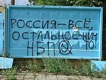 The National Bolshevik Party (NBP; Russian: Национал-большевистская партия) operated from 1993 to 2007 as a Russian political party with a political program of National Bolshevism. The NBP became a prominent member of The Other Russia coalition of opposition parties.[16] Its members are known as Nazbols (Russian: нацболы),.[17]