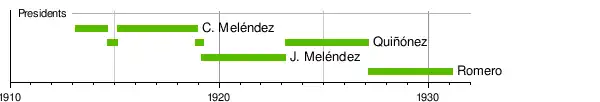 1915 | 1 March 1915 | 21 December 1918 | 3 years, 295 days | Alfonso Quiñónez Molina |