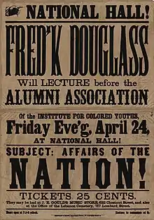 - On April 24, 1863, Frederick Douglass lectured on "Affairs of the Nation" (see poster at right).