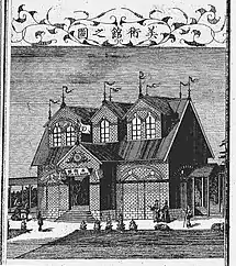 Staged in Ueno Park in Tokyo from 1 April to 31 July 1890, the third National Industrial Exhibition ran for 122 days and drew 1,023,693 visitors, an average of 8,391 visitors per day.[4] With the backing of Sano Tsunetami, it was initially planned as an Asian Exposition (アジア博覧会), but due to the opposition of Finance Minister Matsukata Masayoshi and others, it was eventually held as the Third National Industrial Exhibition, although a foreign flavour was retained, with invitations sent and attendees from abroad.[4] The Exhibition featured the country's first electric tram.[4]