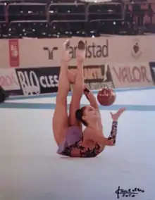Kabaeva started rhythmic gymnastics at age three, with coach Margarita Samuilovna.[11] In 1993, she represented Kazakhstan at an international competition in Japan.[12][13][14]