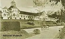 Selangor Museum was the de facto national museum pre-independence.[4] Selangor Museum was established in 1887 as an amateur affair by colonial civil servants.[5] It was taken over by the colonial government, and following the formation of the Federated Malay States in 1896, in 1904 it was administratively merged with the Perak Museum in Taiping as the Federated Malay States Museums under director Leonard Wray Jr.[6] A purpose-built museum building designed by prominent architect Arthur Benison Hubback opened in 1907.[7]