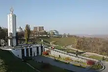 The National Museum of the Holodomor-Genocide (Ukrainian: Національний музей Голодомору-геноциду, romanized: Natsionalnyi muzei Holodomoru-henotsydu),[2] formerly known as the Memorial in Commemoration of the Holodomor-Genocide in Ukraine, is Ukraine's national museum and a centre devoted to the victims of the Holodomor of 1932–1933, a man-made famine that killed millions in Ukraine. The museum was opened on the day of the 75th anniversary of the Holodomor in 2008. It gained the status of a national museum in 2010. The museum is located on the Pechersk Hills on the right bank of the Dnipro river in Kyiv, adjacent to the Kyiv Pechersk Lavra.