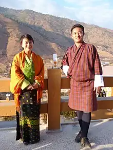 Madame Phuntso Wangmo, CEO, and Needrup Zangpo, Editor in Chief, of Bhutan Observer with their National Order of Merit, awarded by His Majesty Jigme Khesar Namgyel Wangchuck, in December, 2011. - Sonam Kinga, Chairperson of National Council (current position), Actor and Researcher at the Center for Bhutan Studies [in Gold] (17 December 2014).
