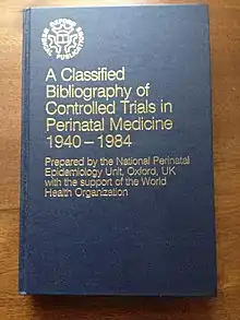 - National Perinatal Epidemiology Unit (1986). Classified Bibliography of Controlled Trials in Perinatal Medicine 1940–1984. Oxford: Oxford Medical Publications.
