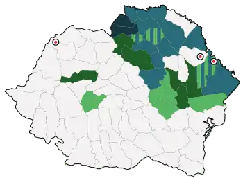 The party soon built a base in Saxon Transylvania, mainly among affiliates of the German Party (to which Brandsch and Roth belonged). It also had a regional Romanian newspaper, Svastica Ardealului ("Transylvania's Swastika"), published by Ion Cleja.[49][50] This wing had stronger chapters in Sălaj and Bihor, respectively led by Cleja and lawyer Ciprian Hubic, and was joined by Mihail Kreutzer, who claimed to represent the Satu Mare Swabians.[51] By April 1933, Brandsch was openly anti-Nazi and was attempting to establish a democratic movement of the Saxons and the Germans in general; Roth, meanwhile, "encouraged the formation of National Socialist battalions".[52]