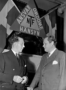![]() Two delegates at a NTF meeting in September 1951 | |