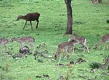 The variety of fauna is also vast. There are 50 species of invertebrates found nowhere else.[3] Among the 30 species of mammals living in the park are great number of deer, Spanish ibex (Capra pyrenaica) and wild boars (Sus scrofa), as well as important populations of mouflon (Ovis aries orientalis), a wild sheep, and fallow deer (Dama dama). Except for the Spanish ibex, these were introduced for hunting, and have caused some pressure on the native species. Wolves were also re-introduced in recent decades.[3]