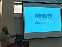 In 2012, research on the pieces returned to the mainstream academia with the involvement of Reniel Rodríguez Ramos from the University of Puerto Rico at Utuado, who was concerned that up to that point most of the local research had been carried by historians.[7][lower-alpha 4] During his first visit to the ICP, he encountered part of the Collection being repurposed and the rest in storage.[4] While attending an activity in the British Museum in 2014, Rodríguez took some pieces with him to the cuneiform exhibit, where he was casually presented to C.B.F. Walker while showing Jago Cooper a copy of Hostos' letter to the now-retired cuneiform expert.[4] None of the present gave a definitive answer to their nature, but agreed that further study was needed.[4] Parallel to this process, a documentary began being prepared by cinematographer Carlos García in collaboration with Rodríguez and his team.[4]