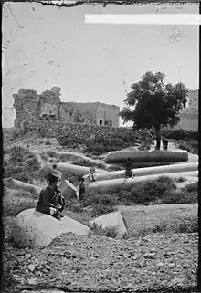The ruins of the Crusader Cathedral from the 12th c. CE, where Holy Roman Emperor Frederick Barbarossa was supposedly buried, in the Southern Lebanese city of Tyre, photographed between 1900 and 1920.