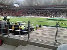On 8 July 2008 it was announced that the stadium had been removed from the list of stadiums for the 2009 Confederations Cup as it was believed it would not be ready on time.[19] Surprisingly, however, it became the first newly built 2010 stadium to be completed.[20]