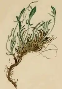 A sprig of Rumex acetosella eaten by larva