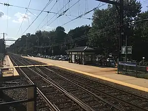 ![]() The station at Neshaminy Falls, facing inbound towards Center City Philadelphia from the mini-high level platform on the outbound (West Trenton-bound) side. | |||||||||||||