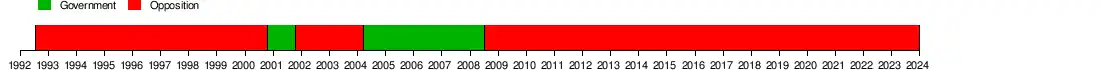 | Year | Leader | Popular vote | % of popular vote | # | # of seats | Seat change | Coalition | Status |