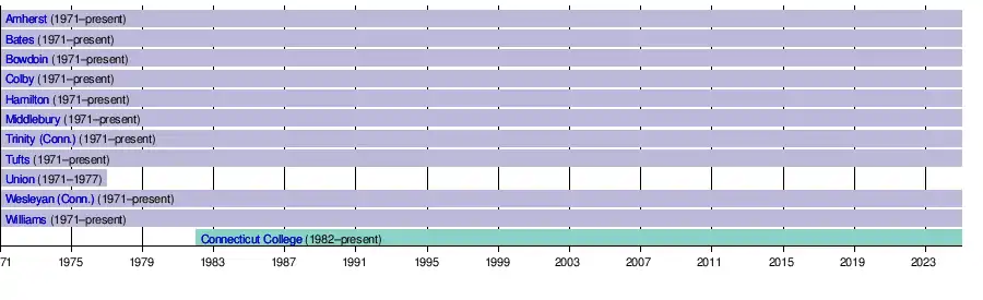 Connecticut CollegeWilliams CollegeWesleyan UniversityUnion CollegeTufts UniversityTrinity College (Connecticut)Middlebury CollegeHamilton College (New York)Colby CollegeBowdoin CollegeBates CollegeAmherst College