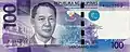 | ₱100 | Violet | Manuel A. Roxas (1892–1948), Old Bangko Sentral ng Pilipinas (BSP) building in Intramuros, Manila, Inauguration of the Third Philippine Republic | Mayon Volcano in Albay; butanding, Rhincodon typus, whale shark; Bicol textile design | Limited | |||||