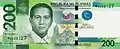 | ₱200 | Green | Diosdado P. Macapagal (1910–1997), EDSA People Power 2001, Aguinaldo Shrine in Kawit, Cavite, Barasoain Church in Malolos, Bulacan | Chocolate Hills in Bohol; Tarsius syrichta, Philippine tarsier; Visayas weave design | December 16, 2010 | Limited | ||||