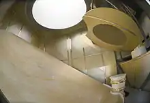 The main mirror, S-band mirror and S-band feed horn inside NNO-1.