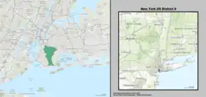 Prior to 2013, the district consisted primarily of middle-class white neighborhoods, including large Jewish, Italian, Irish, and Russian populations, in southern Brooklyn and south central Queens. Before redistricting, the Queens Tribune found that the district increasingly swung Republican following the September 11 attacks in 2001, when many police and firefighters were lost from the Rockaways.[4] Its rightward shift was also attributed to the increasing tendency of Orthodox Jews to vote for Republicans.[5] Its representation in Congress was reliably Democratic for decades, electing prominent liberals such as Chuck Schumer and Anthony Weiner, and, prior to that, Emanuel Celler and Elizabeth Holtzman (when the district was differently numbered). Briefly bucking the trend, Republican Bob Turner succeeded Weiner, who resigned on June 21, 2011, after winning the special election on September 13, 2011. However, the previous 9th District was eliminated soon thereafter, after New York lost two districts in the redistricting cycle resulting from the 2010 Census, and its territory was divided among several neighboring districts.