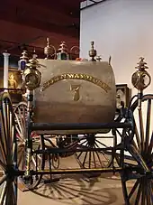 The New York City Fire Museum tells the story of the early days of firefighting in New York City.[5] The collection is home to firefighting artifacts and equipment dating back to the 1650s, such as carriages, engines, fire marks, buckets, trumpets, helmets, lanterns, rattles, and uniforms. Permanent exhibitions include: Firefighting on Parade, Romance of Firefighting, Fire Apparatus, and Tools and Uniforms. The museum also has an extensive collection of fire insurance marks.[5]