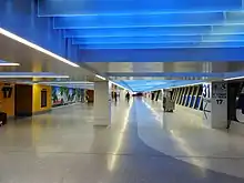 Following the opening of the 33rd Street entrance, the LIRR concourse was doubled in width, from 30 to 57 feet (9.1 to 17.4 m), and the ceilings raised to a minimum height of 18 feet (5.5 m).[64] To raise the ceiling, workers removed seven "head knockers,"[65] low-hanging steel beams which were part of the original Penn Station and were only 6 feet 8 inches (2.03 m) above the concourse's floor.[66][67] In March 2023, the MTA declared the concourse substantially complete.[68] As part of the project, 33rd Street between Seventh and Eighth Avenues will be permanently closed to vehicular traffic and converted into a pedestrian plaza.[69]