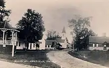 The Little Ossipee River runs through Newfield village and once provided water power to operate two gristmills, two lumber mills, a barrel stave mill, a shook mill, a planing mill and a carding mill. West Newfield had a sawmill, gristmill and stave mill. There was an attempt in the community to mine silver and iron, but it was not profitable. By 1880, the population was 995.[4] Newfield would be heavily damaged by the Great Fires of 1947.