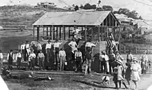 Newmarket was originally known as "The Three Mile Scrub" due to its distance from the city, and Ashgrove Avenue, which links Enoggera Road with Waterworks Road to the west, was known as Three Mile Scrub Road. As Brisbane continued to grow northward along Kelvin Grove Road, in about 1880 it was decided to relocated Brisbane's livestock saleyards from Normanby to an outer location, the area now bordered by Enoggera Road, Newmarket Road, Wilston Road and Alderson Street. This area became known as the "new market" given the suburb its name.[3] The new sale yards were serviced by Newmarket railway station after the rail line was extended from Mayne Junction in 1899.