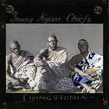 The Ngoni people are an ethnic group living in the present-day Southern African countries of Malawi, Mozambique, Tanzania, Zimbabwe, and Zambia. The Ngoni trace their origins to the Nguni and Zulu people of kwaZulu-Natal in South Africa. The displacement of the Ngoni people in the great scattering following the Zulu wars had repercussions in social reorganization as far north as Malawi and Zambia.[1]