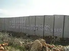 On 6 November 2009, activists marking the twentieth anniversary of the fall of the Berlin Wall managed to topple a small part of the wall that cuts through the village's land; the first time Palestinian demonstrators succeeded in toppling a part of Israel's concrete barrier.[44]