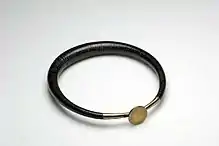 The Nias people used a variety of material for the creation of their weaponry: leather, cord or woven fibres, precious metal, iron and brass. The Nias used spears, swords and blades as their weapon. The Nias spear (toto'a doho in the south, toho in the north) was mainly used for hunting; the shaft is made of dark hardwood of nibung palm wrapped with rattan. Other type of spears are the burusa, with a triangle-shaped head.[24] The Nias sword (gari) is a combat weapon; both the sword and its sheath have simple undecorated form.[25] The most well-known of the Nias weapon is the balato or tolögu, a steel sword with a protective amulet believed to possess magical power. The balato has a hilt made of brass. The sheath of the balato contains a spherical bundle of rattan (ragö balatu) which performed as a protective amulet. This protective amulet is usually attached with a variety of objects e.g. animal fangs which is formed so that it looks like the jaw of the mythical lasara.[26] The balato is only reserved for the highest nobles as a kind of proof of the authority and the social rank of its owner.[25]