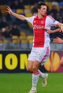 On 24 May 2014, it was announced that Viergever had signed a four-year contract with Ajax.[3] Viergever scored an important goal for Ajax against FC Schalke 04 in the quarter-finals of the UEFA Europa League. After a 2–0 victory in the first leg in Amsterdam Viergever saw his team trailing with 3–0 in the away game in Gelsenkirchen before hitting the net in 110th minute of extra time, sending his club to the semi-finals on away goals for the first time in over twenty years.[4]