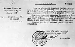 ... the monstrousness of my crime is immeasurable especially in the new stage of struggle of the U.S.S.R. May this trial be the last severe lesson, and may the great might of the U.S.S.R. become clear to all.[43]