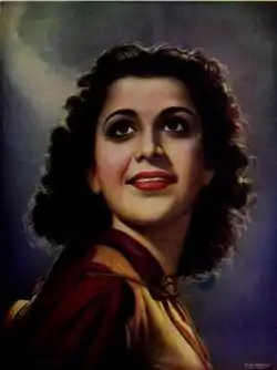 Her first big film was Shikayat (1948), made in Poona; then came Bela (1947), a Ranjit production, and after that many more in which she played leading roles. She played the role of the court dancer Bahar, who envies Prince Salim's (Dilip Kumar) love for Anarkali (Madhubala) in the film Mughal-e-Azam (1960). The songs Teri mehfil mein and Jab raat ho aisi matwali were picturised on her.[3] Her other films included Dara (1953) and Khyber.[2]