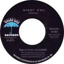 "Night Owl" was inspired by the Night Owl Cafe in Greenwich Village in New York City, where the Flying Machine often performed.[2][3] The Flying Machine version was released as a single backed by "Brighten Your Night with My Day."[4][5] Taylor and the other group members were dissatisfied with their performance on the recording, considering it "mediocre."[5] Although it got some regional radio play in the northeast United States, the label declined to fund further recordings by the band.[4] Author Stephen Davis described the song as "a rollicking R&B number."[2] Tony Orlando claims to have been particularly struck by the song.[6] Taylor later rerecorded "Night Owl," along with several other songs he wrote for the Flying Machine, such as "Knocking 'Round the Zoo," for his self-titled solo debut album on Apple Records.[5] Allmusic critic Lindsay Planer rated it as one of the "notable inclusions" on the James Taylor album.[7] The James Taylor album included instrumental interludes between songs, and James Taylor biographer Timothy White describes the brass instruments that were used for the interlude introducing "Night Owl" as "ungainly" and sounding like the overture to a Broadway musical.[4] White does feel that the brass instruments were used better accompanying the song itself.[4]