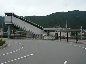The station consists of two opposed side platforms connected to the station building by a footbridge. The station is unattended.