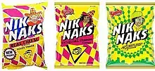 NikNaks, also known as "amaNikNaks,"[1] is the brand name for a popular[2] brand of South African Cheese puffs manufactured by the Simba Chips company since 1972.[3] Originally only coming in a "Cheese" flavour. It is normally sold in 55 gram and 135 gram bags, and is primarily made from maize, vegetable oil, salt and cheese.