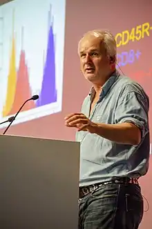 ![]() Nikolaus Rajewsky speaking at the Intelligent Systems for Molecular Biology (ISMB) / European Conference on Computational Biology (ECCB) in Basel, 2019 | |