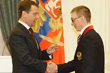 ![]() Polukhin (right) is awarded the Order of Friendship[1] by Russian President Dmitry Medvedev in 2010. | |||||||||||||||||||||||||||||||||