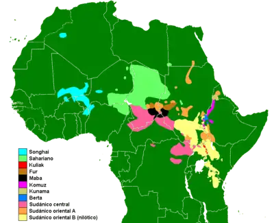 ![]() Distribution of Nilo-Saharan languages (in yellow) | |