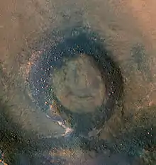 For decades many features on Mars, including ones in Nilosyrtis Mensae, were believed to contain large amounts of ice. This idea was confirmed by radar studies with the SHAllow RADar (SHARAD) on the Mars Reconnaissance Orbiter. It showed that lobate debris aprons (LDA) and lineated valley fill (LVF) contain pure water ice covered with a thin layer of rocks that insulated the ice.[13][14] Ice was found in many locations in the northern hemisphere, including Nilosyrtis Mensae.[15] The most popular model for the origin of the ice is climate change from large changes in the tilt of the planet's rotational axis. At times the tilt has even been greater than 80 degrees[16][17] Large changes in the tilt explains many ice-rich features on Mars.
