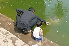 In a 2014 survey by Poribesh Banchao Andolon, a Bangladeshi private organization it was found that the amount of oxygen dissolved in the pond water was 2.01 mg/L, whereas the favorable level is 5 mg/L.[10] In 2012, wildlife biologists of the Center for Advanced Research in Natural Resources and Management found a small population in the wild of Sylhet.[10] Two tiny wild populations were discovered in Assam, in Kaziranga and in the Jia Bhoroli River which is a northern tributary of the Brahmaputra. Also, another temple population of these turtles was identified in the Kasopukhuri pond on Nilachal Hill, next to the Kamakhya Temple at Guwahati in Assam.[11] Another temple population is found in the kalyan sagar lake of Tripureshwari temple, Udaipur, Tripura. These turtles are also found in the pond in Baneswar Shiva temple, a shiva temple in Baneswar in the Cooch Behar II CD block in the Cooch Behar Sadar subdivision of the Cooch Behar district in West Bengal, India.