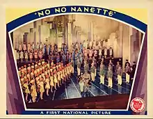 No, No, Nanette is a 1930 American pre-Code musical comedy film with Technicolor sequences that was directed by Clarence G. Badger and released by First National Pictures.[3] It was adapted from the play of the same title by Otto A. Harbach and Frank Mandel. No, No, Nanette was a popular show on Broadway, running for 321 performances, and was produced and directed by Harry Frazee.[4]