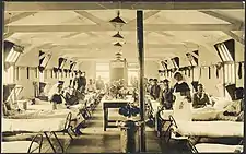 The hospital initially had around 300 beds but this was later expanded to 1000. Attached to the hospital was a venereal-disease (VD) section with 500 beds.[1] The hospital extended to huts known as the No. 11 Camp, where many of the VD patients were treated. The VD section was separated from the rest of the hospital by barbed wire to prevent general convalescent patients from associating with those who had VD.[3]