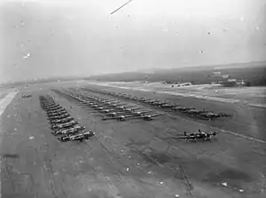 Following the end of hostilities in Europe, 644 Squadron helped to transport the 1st Parachute Brigade to Copenhagen on 8 May, where they were to oversee the surrender and disarmament of the German forces in Denmark. On the following day they carried the remainder of the 1st Airborne Division to Norway for similar duties. Ever since the Normandy invasion, No. 46 Group RAF had been involved in a "shuttle service" of ferrying freight to the front line and removing either wounded or freed prisoners of war to Britain. Although most of the armies were more or less static now that the War was over, RAF Transport Command's responsibilities increased, and so No. 38 Group RAF received orders to assist in this capacity. In addition to the transport of freight and prisoners of war, No. 644 Squadron also flew service personnel to Greece, North Africa and Italy. In July, the Squadron lost a Halifax over the Pyrenees. In November 1945, the 6th Airborne Division was despatched to Palestine as a quick reaction peace keeping force for the British Empire,[9] and 644 Squadron were ordered to lend them their support and so accompanied them to RAF Qastina in Palestine (now Hatzor Airbase). On 1 September 1946 No. 644 squadron disbanded by being re-numbered to No. 47 Squadron RAF.[10]