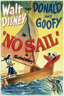 No Sail is a cartoon produced by Walt Disney Productions in 1945, featuring Donald Duck and Goofy.[1] It follows Donald and Goofy after finding themselves stranded at sea and the crazy ways they try to survive.