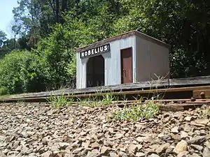 Nobelius railway station is situated on the Puffing Billy Railway, and opened in 1927. It currently consists of a short platform with a "Mallee Shed"-type corrugated iron waiting shelter, which includes a small lockable room, although there was also a more substantial building in the past. Trains do not usually stop at the station, except by prior arrangement.