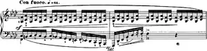 4 time. The first section, marked Larghetto, features an intricate, elaborately ornamental melody over an even quaver bass. The second section, labeled doppio movimento (double speed), resembles a scherzo with dotted quaver-semi quaver melody, semiquavers in a lower voice in the right hand, and large jumps in the bass. The final section is a shortened version of the first (14 bars rather than 24) with characteristic cadenzas and elaboration, finishing with an arpeggio on F♯ major, falling at first, then dying away. Many consider this nocturne to be the best of the opus, stating that its musical maturity matches some of his later nocturnes."[2] Pianist Theodor Kullak remarked about this piece, "The return of the heavenly opening theme... touches [one] like a benediction."[2]