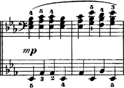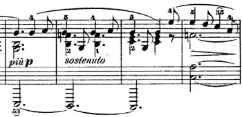4 meter. In measure 41, the key changes to E♭ major and returns to G minor in measure 67. The piece is a total of 91 measures long, ending with a Picardy third, and is in ternary form.[1] One of Chopin's students, Adolphe Gutmann, claimed that Chopin himself forgot to mark the increase in tempo for the chorale, which led to the section being played too slowly.[7]